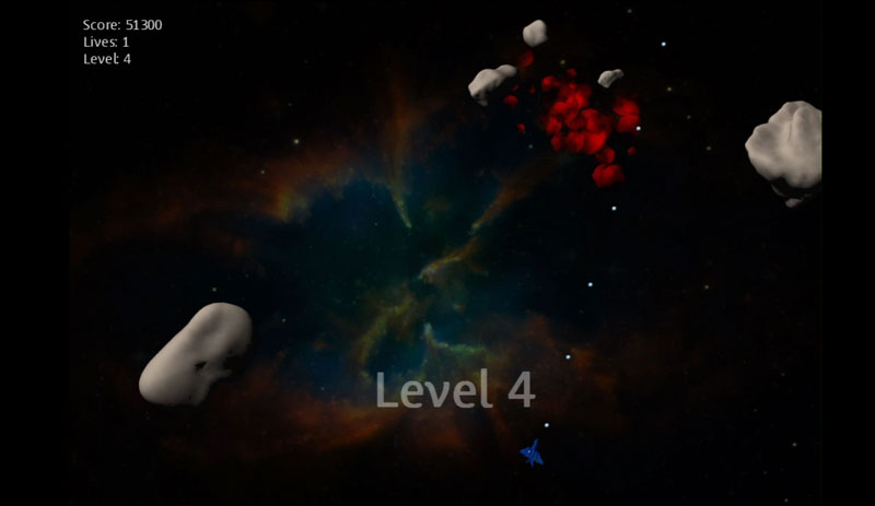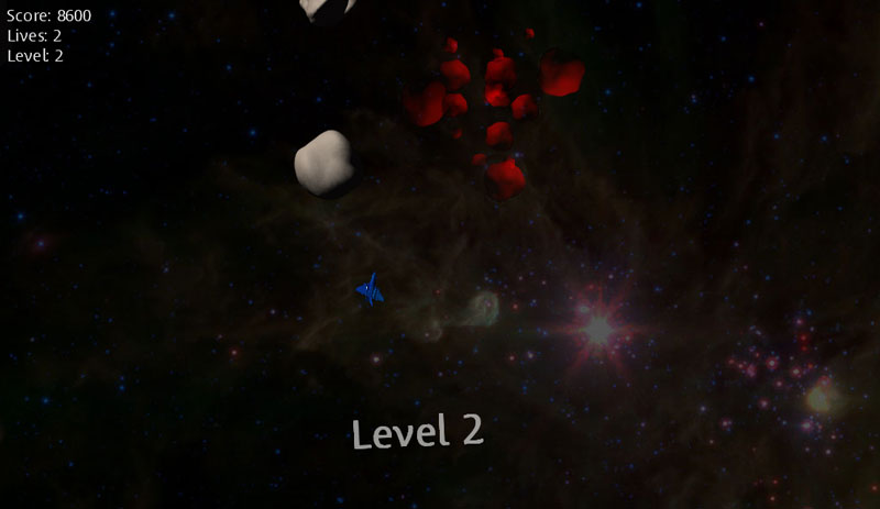 Demesteroids is an Asteroid clone written in C# and XNA, the now-deprecated game dev library for C#. The asteroid sprites were created by rendering them from 3D mesh representations from actual astronomical observations and the background images were taken by the Hubble telescope. Rather than initiating new object instances for each bullets, and thus overburdening the garbage collector, bullet objects are recycled.