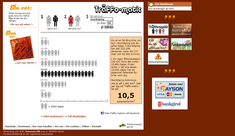 Keeping it all SFW, Kondomklubben.com also offered the Kondomhoroskop - your personal condom horoscope - and the magnificent Träffo-matic - a prehistoric Tinder. Both these services are still active so go ahead.